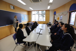 少し緊張気味で、先生の発問にも小さな声でしか答えられませんでしたが、「自分の考えが答えでいいんですよ。」という先生の言葉に励まされ、それぞれの授業を熱心に受けていました。