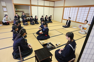 授業の後は、お楽しみのクラブ体験。バレーボールで汗を流したり、小学部でも教わった茶道に挑戦したり、中学生と一緒に英語クラブを体験したりしました。