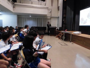 24日(水)に、視聴覚ホールにて、2年生のつなぐ手「志ある人との出会い」の授業に獣医さんを招き、お話を聞きました。