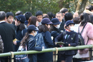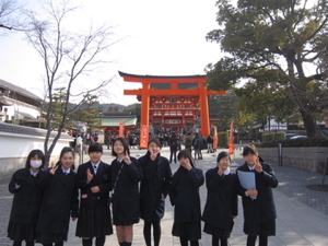 2班は、伏見稲荷大社、東福寺、晴明神社を見学。くみひも作りを体験しました。