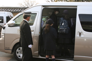 本日お世話になるジャンボタクシーの運転手さんに挨拶をし、いよいよグループごとに出発です。