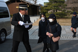 5班は、車折神社、晴明神社を見学。生八ツ橋作りを体験しました。
