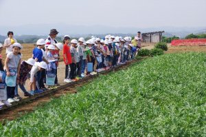 スイカやカボチャ、メロンの畑を見学しました。