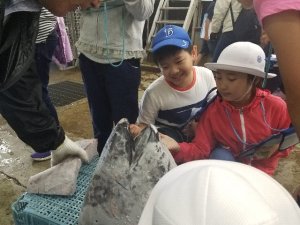 三浦ボランティアガイドの方が実物を紹介しながら、丁寧にマグロ漁について紹介して下さいました。