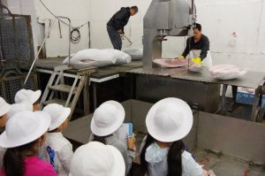 ここでは超低温の冷凍庫とマグロの解体を見学しました。