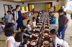 昼食は、油壺の観潮荘でカレーライス。子どもたちは、すごい勢いでカレーを食べていました。