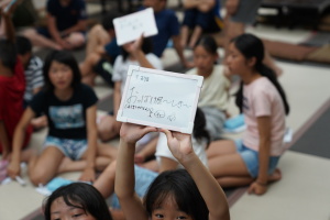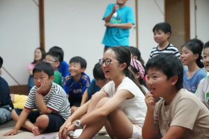 臨海学校も3日目を迎えて、疲れもたまっているはずですが、疲れを感じさせないほど、子どもたちはゲームに夢中になっていました。