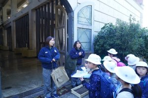 飼育している動物たちが気持ちよく生活するために、また飼育員さんたちスタッフが怪我をしないように、細やかなところにまで心配りをして飼育していることがよく分かりました。ゾウ舎見学の後は、小グループに分かれて、自分たちだけで見学しました。他の動物を見て回り、飼育の工夫を探したり、その動物の様子をよく観察したりしました。