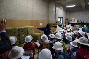ゾウの食べている飼料は、子どもたちが見慣れているティモシーのようなものの他、健康を考えてビタミンやカルシウムを粉末にして混ぜたり、りんごやさつまいもなどで甘みをつけて味を変えたりしてゾウが食べやすいような工夫をたくさんしていることを教わりました。
