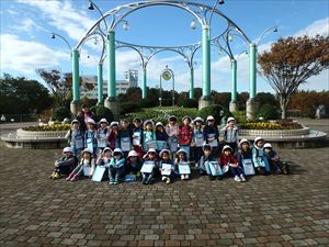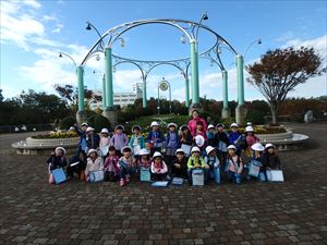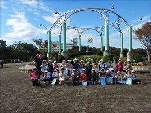 お話を聞いた後に、花時計の前で、クラス毎に集合写真を撮りました。