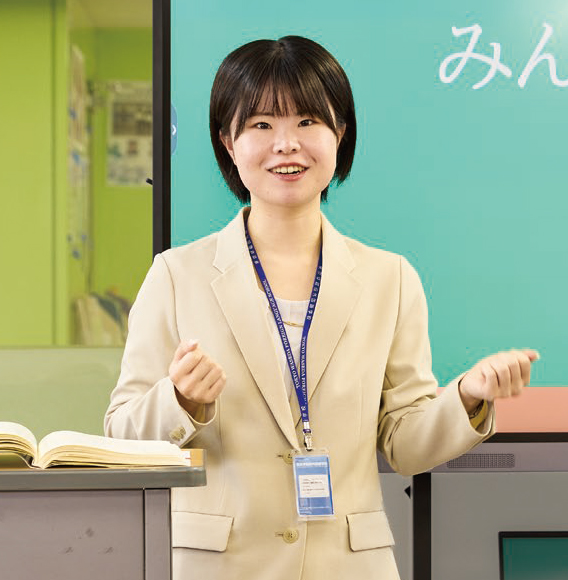 いまは初級の授業を担当し、生活のサポートも行っています。学習指導案づくりには、大学時代に「日本語教授法」の授業で学んだことが生かされています。学習者が学ぶ実用日本語は、私たちが学んだ国語とはまったく違うため教える難しさもありますが、学習者の成長が大きなやりがいです。